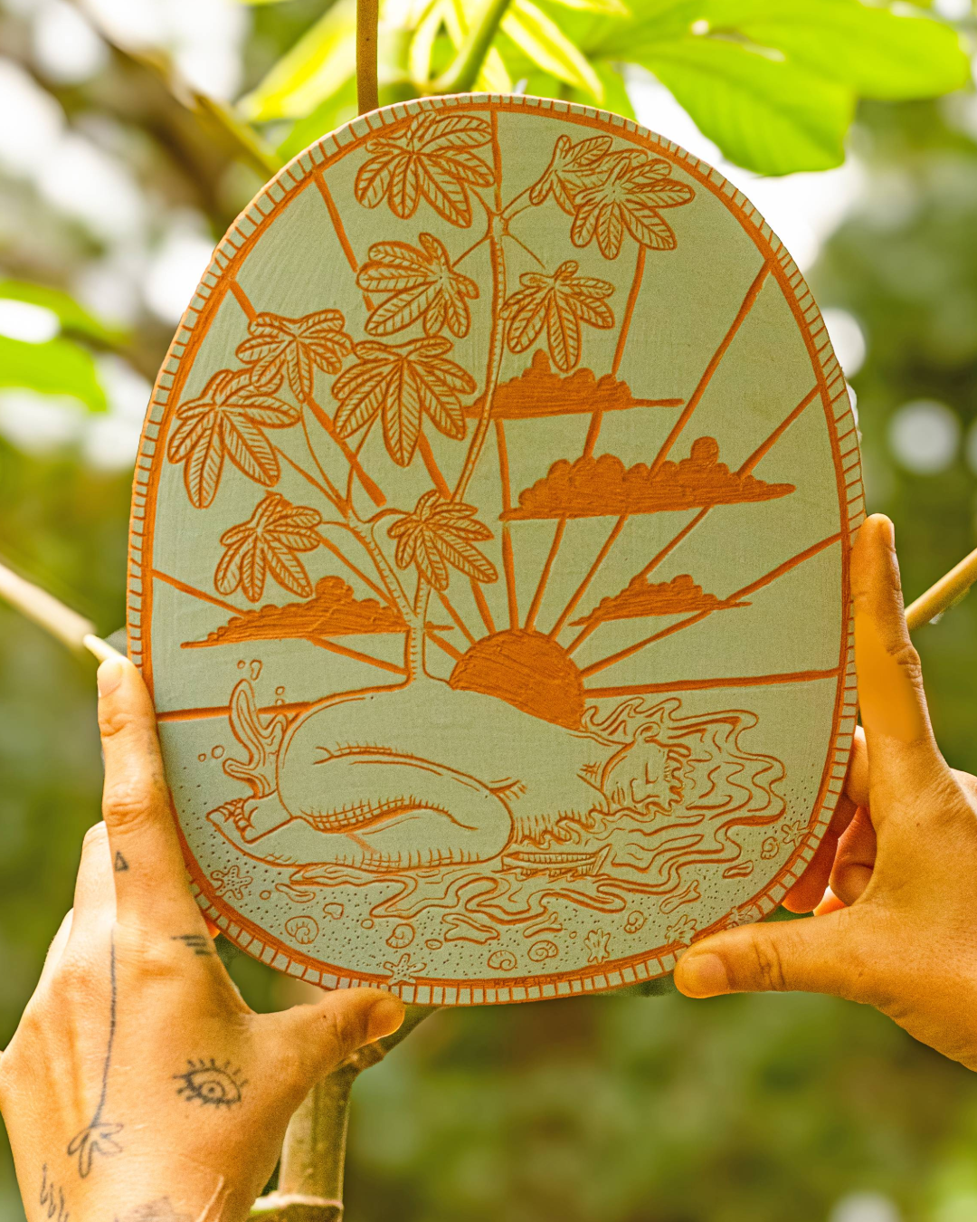 A Sereia do Mangue é inspirada no Mangue de Pedra da Praia Rasa, um dos únicos três no mundo. Sua imagem carrega a força da vida que resiste entre rocha e sal. Já a Sereia da Laguna nasce da Lagoa de Araruama, uma das maiores lagoas hipersalinas do mundo, lugar de acolhimento e afeto, onde a água é calma e fonte de alimento pro corpo e pra alma.