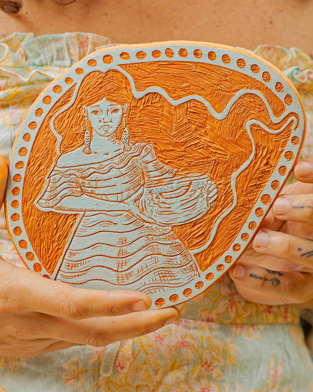Técnica: modelagem manual e esgrafiado